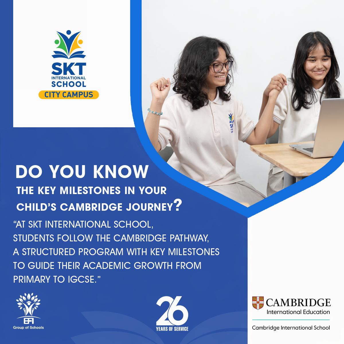 At SKT International School, we guide students step by step through every level of the Cambridge Pathway and we build strong academic foundations, confident English communication, and future-ready skills. Admissions are now open so you can invest in an education that prepares your child for global success.
