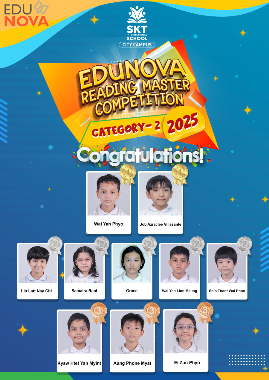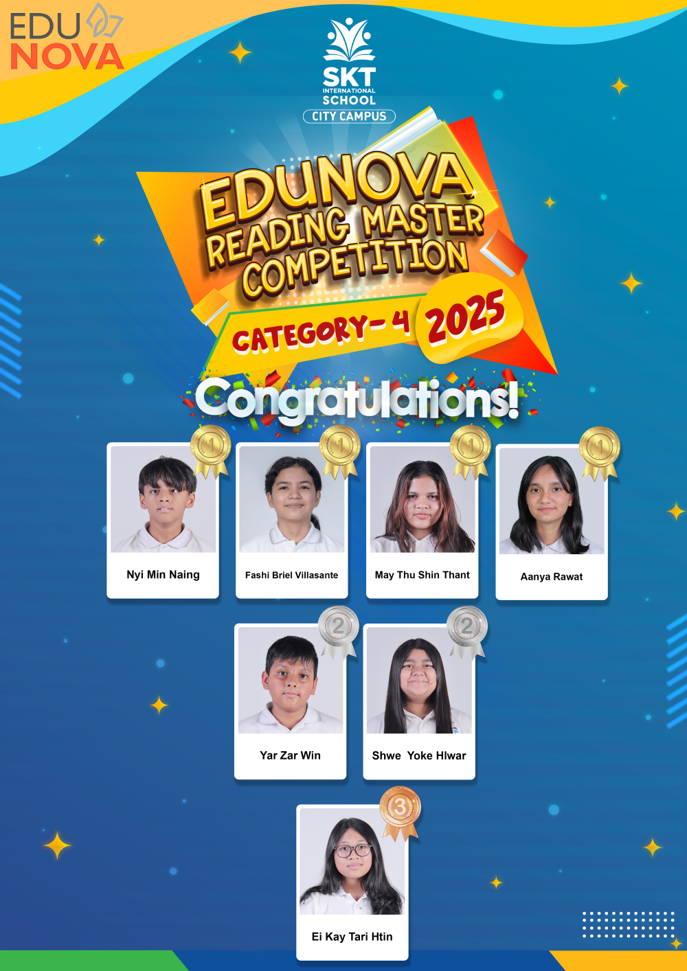 Every book you finish makes you a stronger, smarter student. Let's give a huge round of applause to the winners in Categories 1, 2, 3, and 4! Keep up the incredible reading! You are all Reading Masters!#EDUNOVA2025 #ReadingMasterCompetition #SKTCityCampus #ProudMoment #YoungReaders #LiteracyCelebration #ReadingChampions #StudentSuccess #KeepReading #EducationJourney #SKTInternational